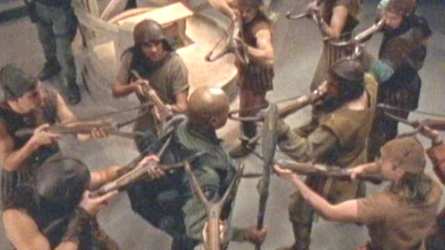 | En ese momento el dios Goa'uld Apophis cruza la puerta y secuestra a Sha're y Skaara. Pero en el último instante, el jefe de la guardia de Apophis, el Jaffa Teal'c, les ayuda a escapar y se une a la huida viajando a la Tierra. | |||||
