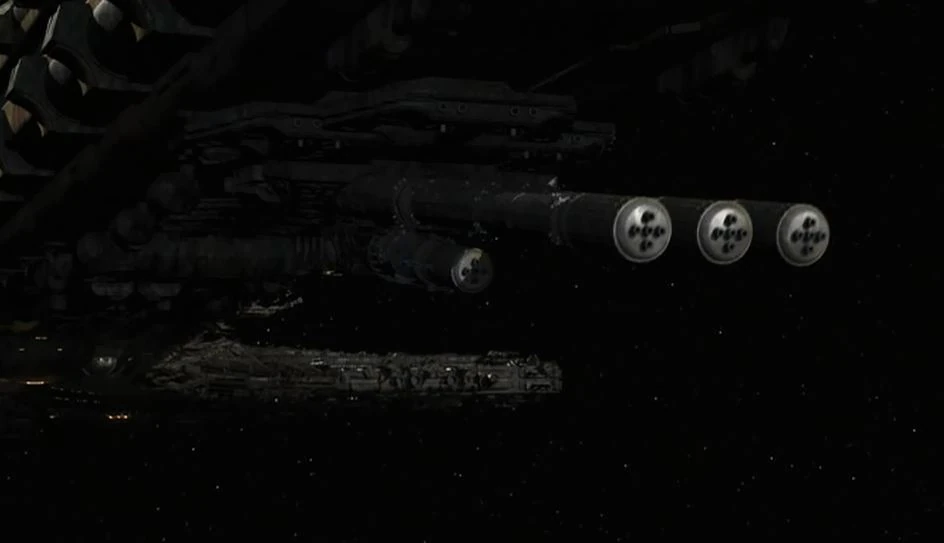 - Une composante principalement destinée à l'autodéfense : une vingtaine de "canon laser" destinés à éliminer les menaces de petites tailles : chasseurs, navettes....