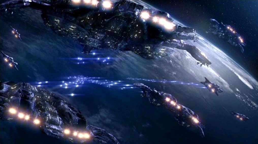 La flotte allée au combat au-dessus d'Asuras.