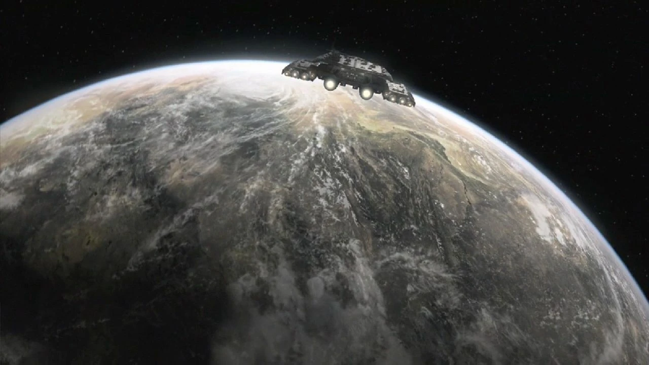 En 2009, une flotte de quelques Ha'taks, de planeurs de la Mort, et des transports de troupes commandé par l'Alliance Luxienne ont attaquées la base Icare, devant faire évacuer la base. Durant la bataille, le colonel David Telford essaya de contrer l'attaque avec une flotte de F-302. Désespérant, le Dr Nicholas Rush, aidé d'Eli Wallace, composèrent l'adresse à neuf chevrons en utilisant comme point d'origine le symbole de la Terre (), ils décryptèrent le code, et Rush contacta la Porte des étoiles d'un ancien vaisseau construit par les Anciens, le Destinée, au lieu de la Terre. Le personnel de la base fut évacué.