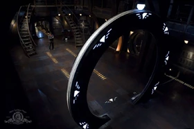 Deux lignes de lumières sur le sol marquer le chemin l'horizon des événements lorsque la porte est activé, et il y a une lumière de style chevron sur le sol juste en face de la porte. Au-dessus de la porte est le roulement de la porte, qui s'allume en tandem avec les glyphes comme ils sont verrouillent, et reste allumé tant que la porte est activé. Une paire de fentes de chaque côté de la porte libérer une décharge de gaz lorsque la porte se désactive. À proximité de l'avant de la salle, deux consoles de chaque côté d'une porte peuvent être utilisées en tant que DHD.