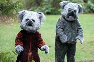 The precredit sequence includes scenes from a real previous Stargate SG-1 episode, "Wormhole X-Treme!", intercut with footage of other episodes as well as a pretend episode in which SG-1 (with Colonel Jack O'Neill) meet the infamous Furlings.[1] Robert C. Cooper had written the Furlings into the Season 2 episode "The Fifth Race" referring to them in passing, not anticipating that fans would ask him about this race whenever he went public.[2] The Furlings in this episode look like four-foot tall koalas, speak with a high-pitched voice and live in a village similar to the Ewoks in Star Wars.[3] (The look of the Furlings in this episode is based on koalas after a joke photoshop session of art director James CD Robbins.[2]) Producer Joseph Mallozzi had hinted at an actual appearance of the Furlings early on,[4] creating considerable hype. Dr. Daniel Jackson greets the Furlings with "we thought we'd never get to meet you", but since they only appear as part of Martin Lloyd's script reading, SG-1 has still yet to meet the actual Furlings.[2]