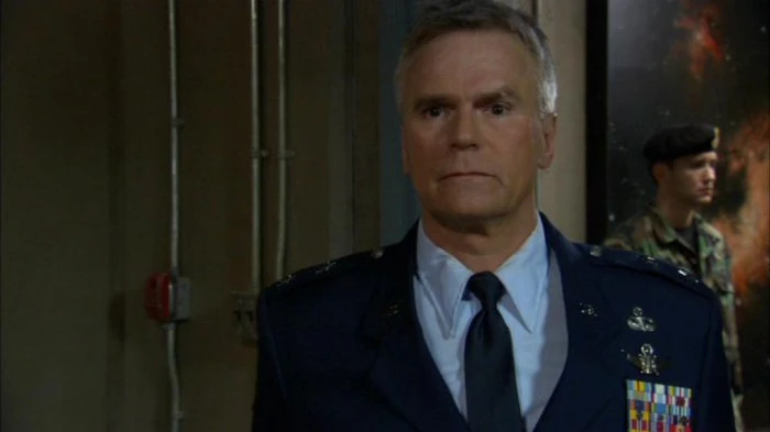 - Martin complains that his main actor has pulled out of the film, and asks what to do. Mitchell suggests simply replacing him with another character, which everyone seems to think wouldn't work. This is a nod to the fact that Richard Dean Anderson's character, Jack O'Neill, was replaced on SG-1's roster by Ben Browder's character, Cameron Mitchell. The joke is furthered with the idea of having O'Neill mentioned but not seen, as in Season 9 episodes like "Beachhead" or "Ethon".