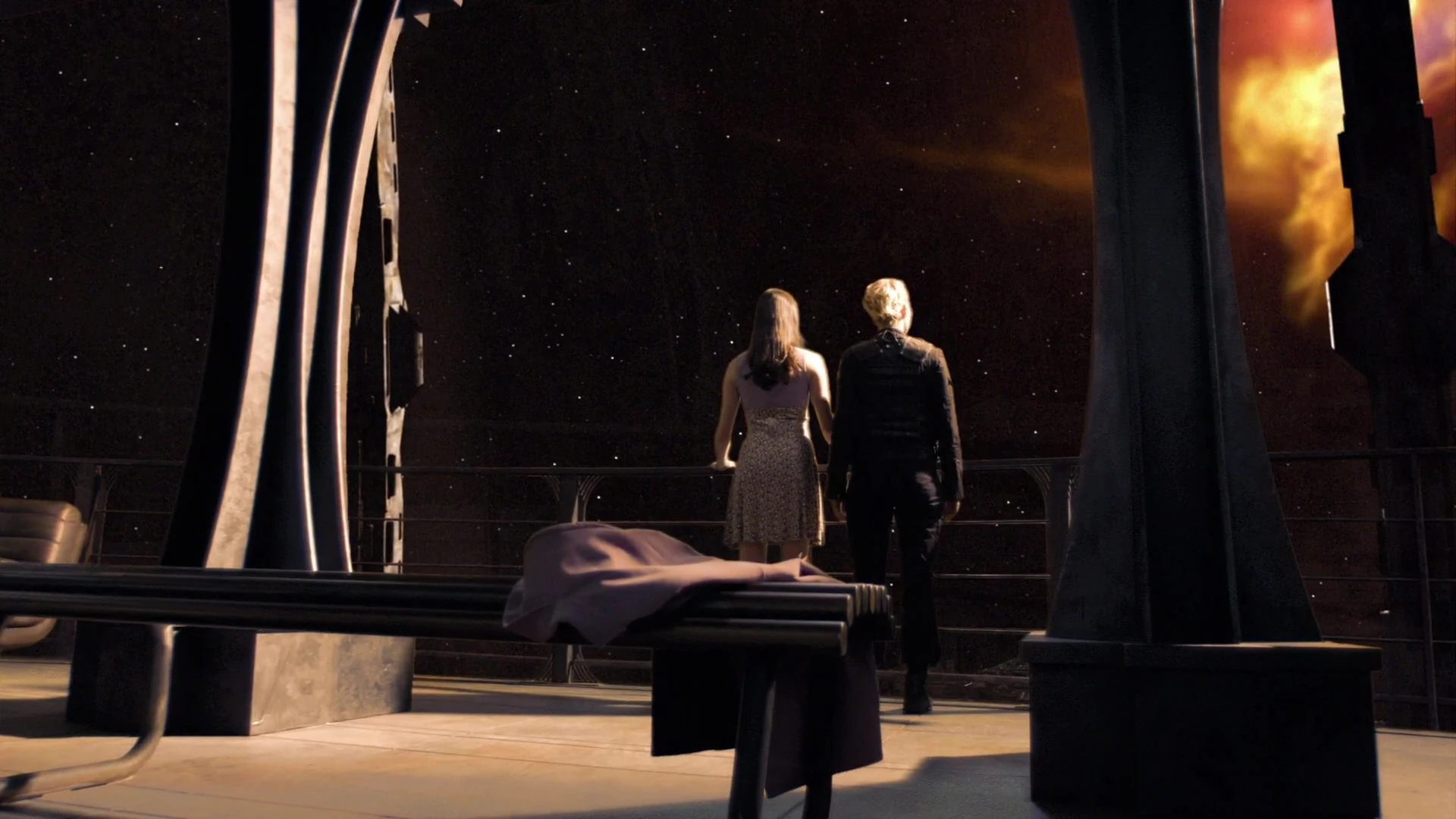 In the store room, Young is on his feet again and informs Wray that Senator Armstrong is dead, but his actions have brought the rest of expedition a day at most, before the carbon dioxide poisoning can kill everyone on board. He also tells her that she should tell everyone the situation and keep things as positive as possible. Meanwhile, Chloe is with Scott in the Observation deck, where Chloe says she watched her father die, and now he is gone. Scott wants her to talk about him, as he didn't get to know him very well. She answers that no matter how busy he was with the work, he always found time to talk to her. She also remembers her mother, who believes that she and her father are both dead. Scott decides to leave her in the observation room, to get back to search the ship.