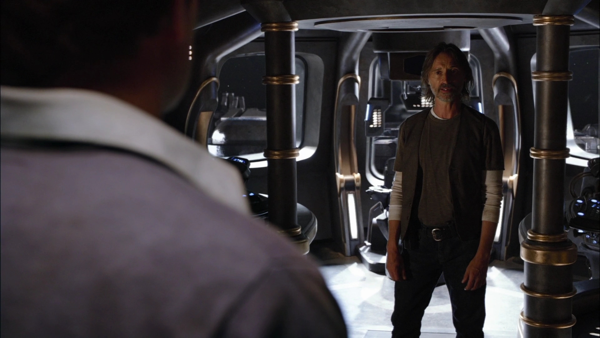 When the Nakai attacked Destiny, Scott and MSgt. Ronald Greer piloted the shuttle in battle against a squadron of Nakai fighters launched from a Nakai mothership, successfully destroying several vessels before they retreated to the mothership. They were recalled when it was discovered that Chloe Armstrong had been taken aboard one of the fleeing ships. After Colonel Everett Young's attempt to use the Long-range communication device to rescue Chloe failed and he ordered the mothership destroyed, Scott attempted to take the shuttle out to rescue her, only to be cut short when the Destiny jumped to FTL. Dr. Nicholas Rush later brought Chloe back using a commandeered fighter. (SGU: "Space")