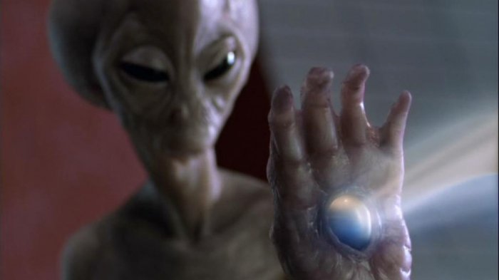 An Asgard using a hand device to remove the Ancient knowledge from Jack O'Neill's mind.