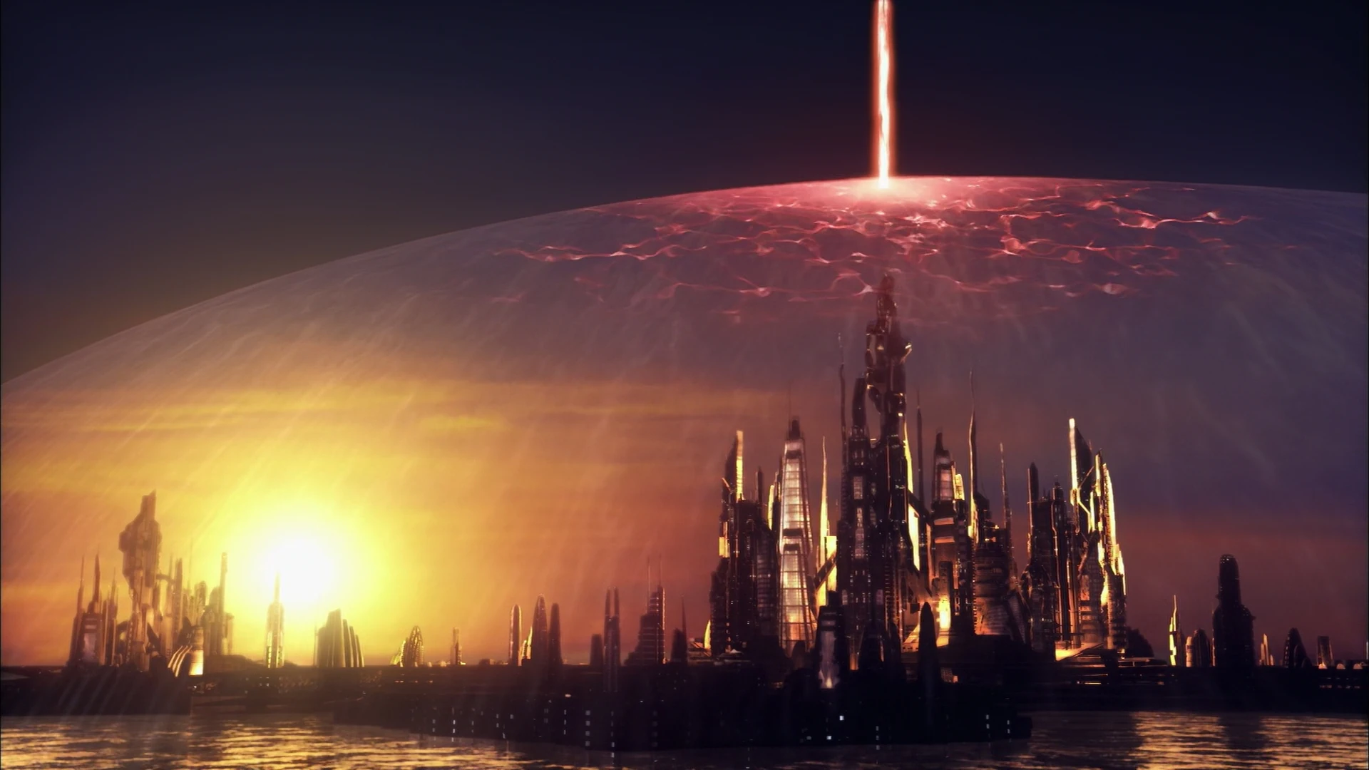 The beam hits Atlantis' shield