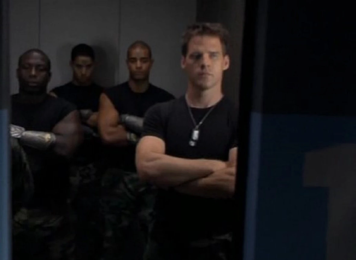 He and his team was later forced to look after a group of International Oversight Advisory delegates to the Gamma Site, where the R-75 bugs the personnel had been researching began taking over the surface. He managed to hold them off until Lt. Colonel Samantha Carter worked out a way to leave the planet alive, by contacting the Odyssey. (SG1: "The Scourge")