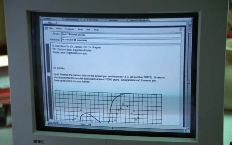 - David Jordan and Steven Rayner both received an e-mail about the age of the amulet-key. (SG1: "The Curse")