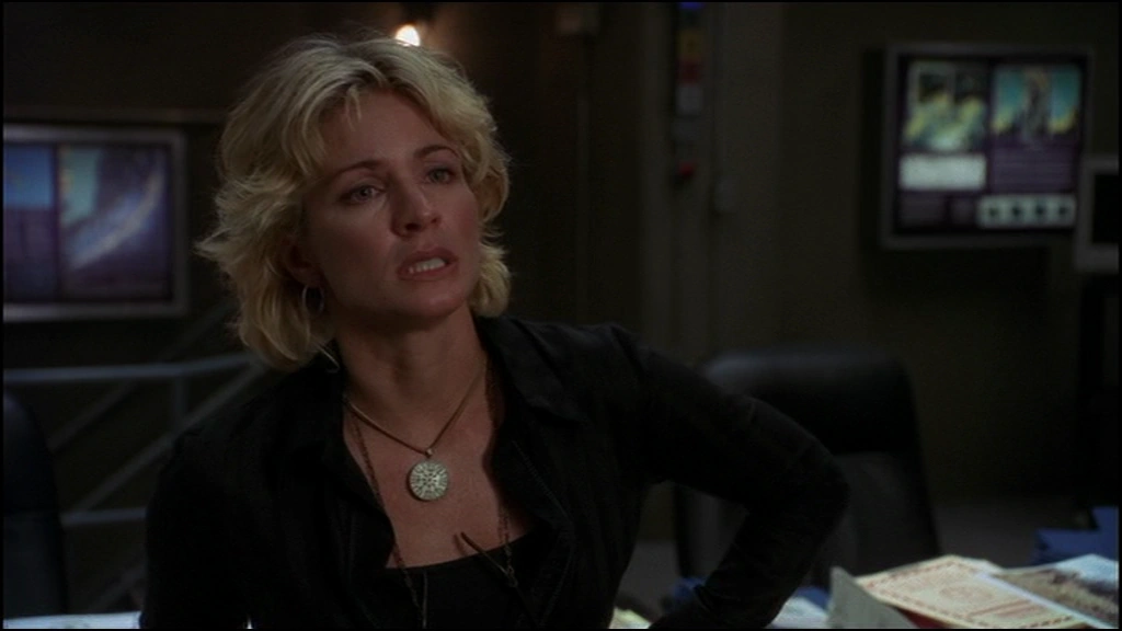 When Stargate Command informed the Atlantis expedition that The Trust planted a bomb in Atlantis, she ordered a search of the city. Later, Dr. Rodney McKay discovered there was no actual bomb but the failsafes from the Zero Point Module had been removed and could not be re-enabled because they were password protected. When the Daedalus arrived, she began to interrogate the crew. Her prime suspect was Dr. Peter Kavanagh and despite her reservations she allowed Ronon Dex to attempted to get the code out of him. Fortunately, Kavanagh fainted before Ronon even touched him. When McKay and Lt. Laura Cadman discovered that Colonel Steven Caldwell's password was used to remove the failsafes, she, Ronon and Lt. Colonel John Sheppard confronted him. The Goa'uld inside him revealed itself and she left the room. Ronon attacked him and threw him to the ground. Sheppard then shot him with a Taser forcing the Goa'uld to lose control and Caldwell told them the code. After the failsafes were re-enabled, she believed that she crossed the line with Kavanagh but Sheppard told her she did what she had to. (SGA: "Critical Mass")