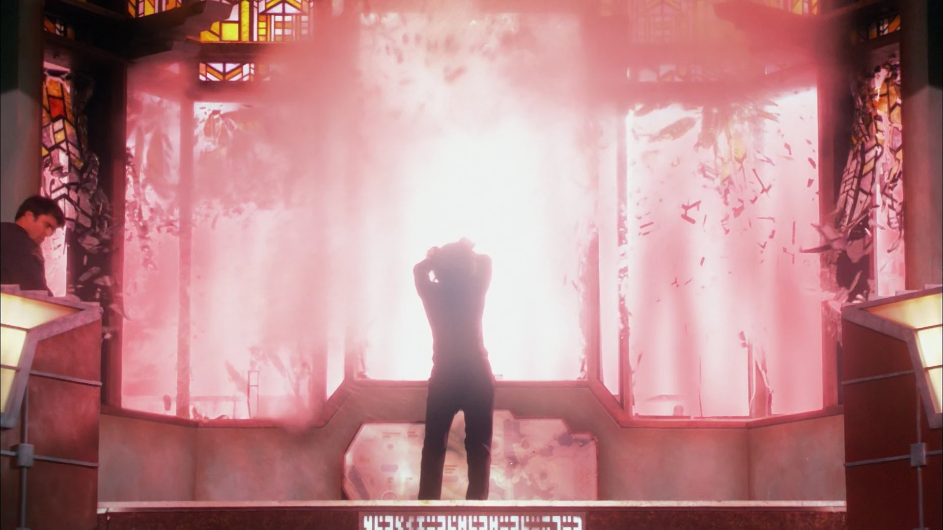 Once back on Atlantis, Teyla Emmagan began to see visions of Lanteans. A short time later, she began to see them as well. Later, it was determined that the visions were caused by a swarm of Flagisallus that was attempting to communicate. She passed out because of the echolocation of the Flagisallus. Luckily, McKay and Sheppard were able to divert the coronal mass ejection with the Daedalus shield boosted by the Zero Point Module. (SGA: "Echoes")