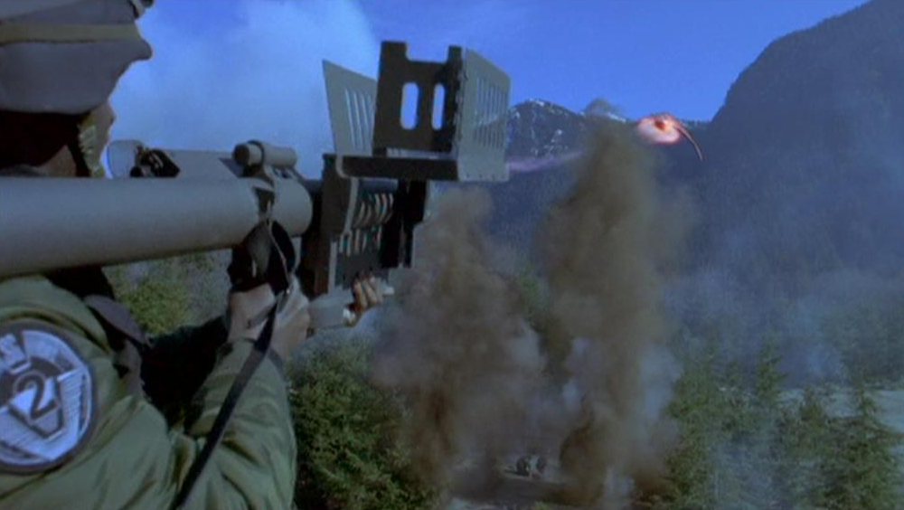 The FIM-92 Stinger missile is a man-portable Tau'ri weapon designed to attack flying craft from the ground. It consists of a disposable launcher and an infra-red guided missile. It is a fire-and-forget weapon, which means after the initial lock-on, the missile guides itself to the target, allowing the user to move to another position. It has been shown to be effective in surprise attacks on Goa'uld Death Gliders with the missiles often capable of destroying the Gliders. (SG1: "Children of the Gods")