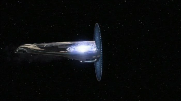 SG-1 manages to board the Ori warship containing Merlin's weapon through the ring transporter. On the ship, they are engaged by four Ori soldiers who refuse to surrender. SG-1 quickly takes out the soldiers and Vala and Mitchell make their way to the room with the weapon while Carter and Teal'c make their way to the ship's bridge. In the room with the weapon, Vala and Mitchell find all of the components of the weapon seemingly in place and Vala starts putting it all together. At the same time, Teal'c takes out more Ori soldiers he discovers heading towards the bridge, allowing Carter to seal off their level and lock out the rings so they won't be interrupted by enemies. Having gotten control of the ship, Carter takes it to hyperspace on a course for the Supergate. As the ship heads for the Supergate, Vala works on putting the weapon together while Mitchell watches. Finally, when they are nearly at the Supergate, Vala completes putting the weapon together. After its ready, Vala looks around for an Ancient to come and take it and is surprised when no one tries to. Mitchell and Vala speculate that either the Ancients don't mind them using the weapon to destroy the Ori, or Vala put it together wrong and it won't work anyways. Shortly after Vala finishes assembling the weapon, the Ori warship emerges from hyperspace to find another warship waiting for them, guarding the Supergate. As Carter tries to raise the ship's shields, Vala and Mitchell are forced into a standoff with four Ori soldiers while Adria herself captures Carter and Teal'c.