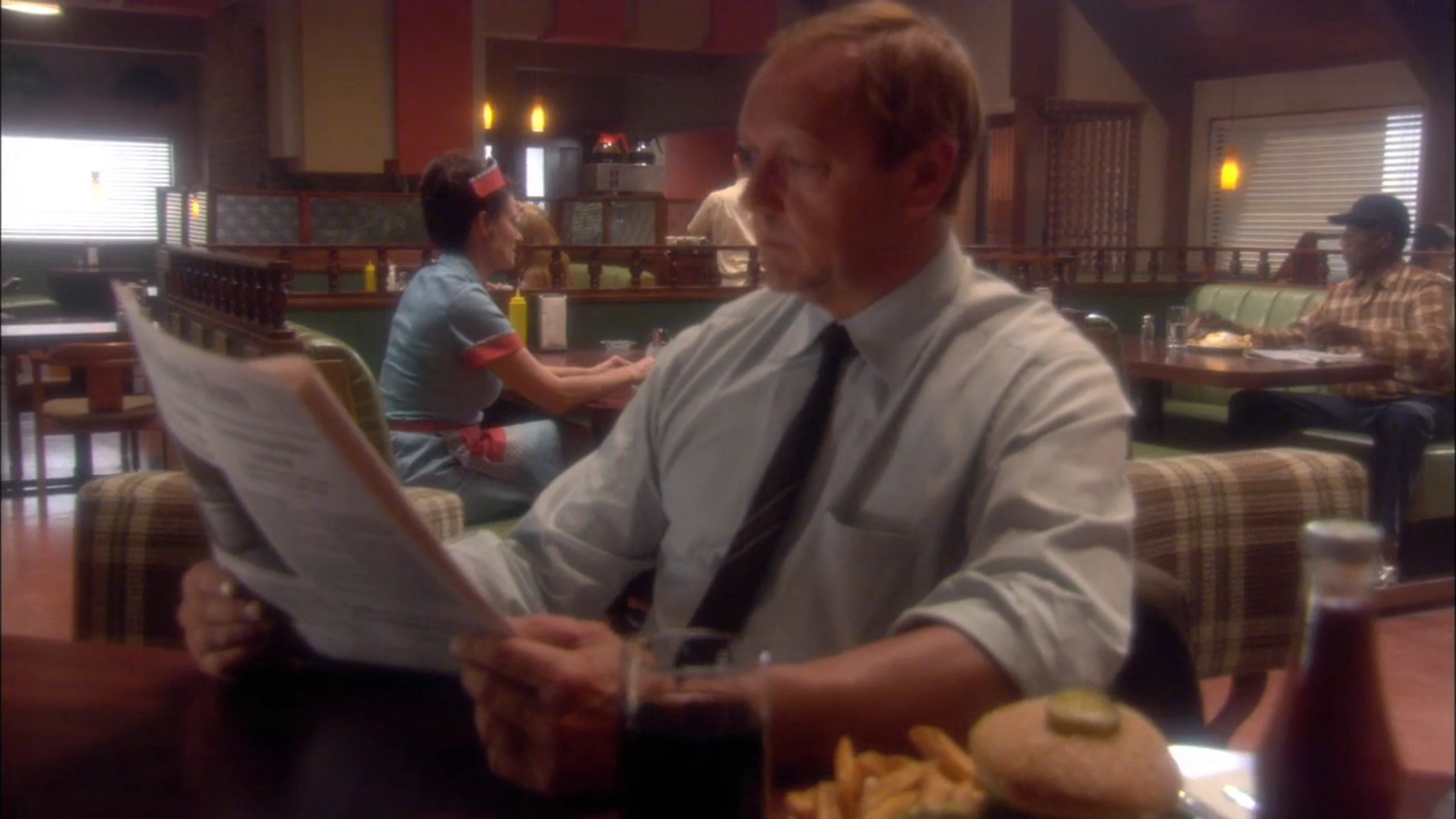 Ma'chello and Fred ordered hamburgers and french fries at a diner. (SG1: "Holiday")