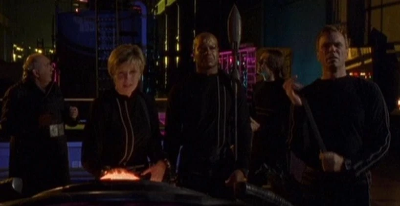 Theta team - a team of android duplicates of SG-1 created by the NID as part of a plan to acquire alien technology, the Theta team being a more twisted, darker version of their templates- arrive on Altiar seeking new methods of recharging. By this time, the complex is falling apart with only Harlan to maintain it and a recent coolant leak causes it be rocked by a series of explosions. In the chaos that followed, the real SG-1 found Harlan and tried to take him back to Earth with them. However, Harlan ran off into the exploding complex and was presumably destroyed. When the SGC dialed Altair again, they were unable to get a lock on the planet. (SG1: "Hydra")