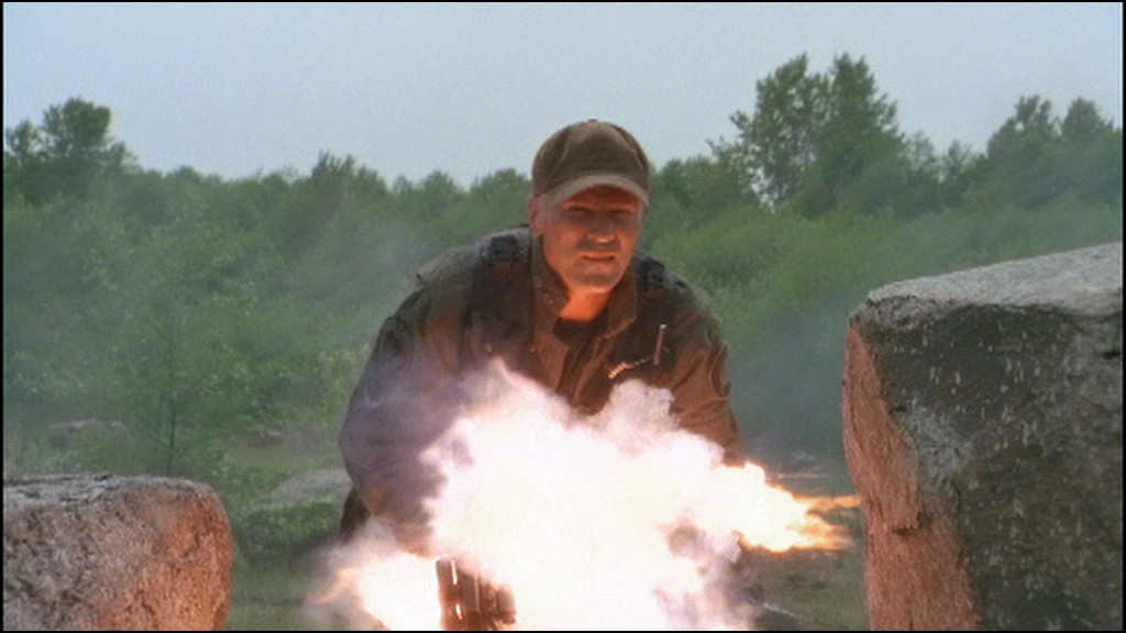 - While Colonel David Dixon and O'Neill are taking cover behind a boulder, Dixon forces his body backwards and moves the set piece.