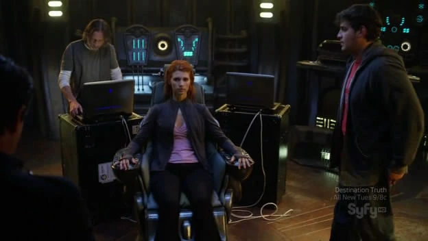 On the bridge, Eli explains to Young that Perry was likely in Chloe the entire time. Regardless, Chloe's mind is becoming more dominant, which means both Ginn and Perry don't have much time. Perry's consciousness is also weaker than the other two, which is why she only surfaced recently. Rush suggests using the interface chair to download their minds from Chloe, similar to how Dr. Jeremy Franklin's mind was uploaded after he disappeared during his second use the chair. Rush admits to having spoken to Franklin, and explains that he deactivated the neural link following the incident where the ship projected a battle scenario into Young's mind. Young points out that Rush's ideas always seem to lead to the chair. Scott notes that it was of no help when Chloe was being transformed by the Nakai pathogen, but Rush counters that this situation is one he understands. Scott is worried about the risks, but Rush insists that there is little chance of Chloe being harmed. Scott insists that Chloe, Ginn, and Perry must make the choice for themselves.