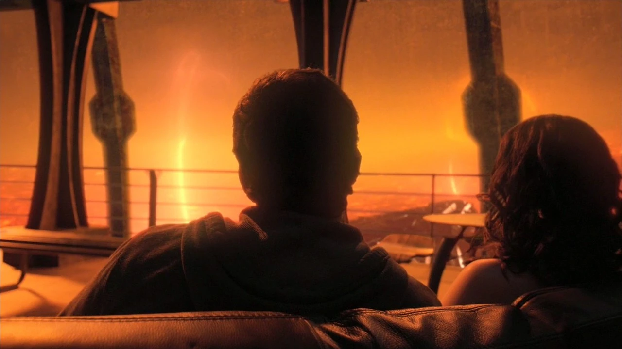 As they disperse, Eli Wallace notices from across the room that Chloe Armstrong and Lt. Matthew Scott are holding hands, and leave, which upsets him. Meanwhile, some of the crew select the supplies to be brought onto the shuttle. Chloe and Scott go into the latter's quarters. There, they start to kiss. They later lie down on the bed and proceed to make love.