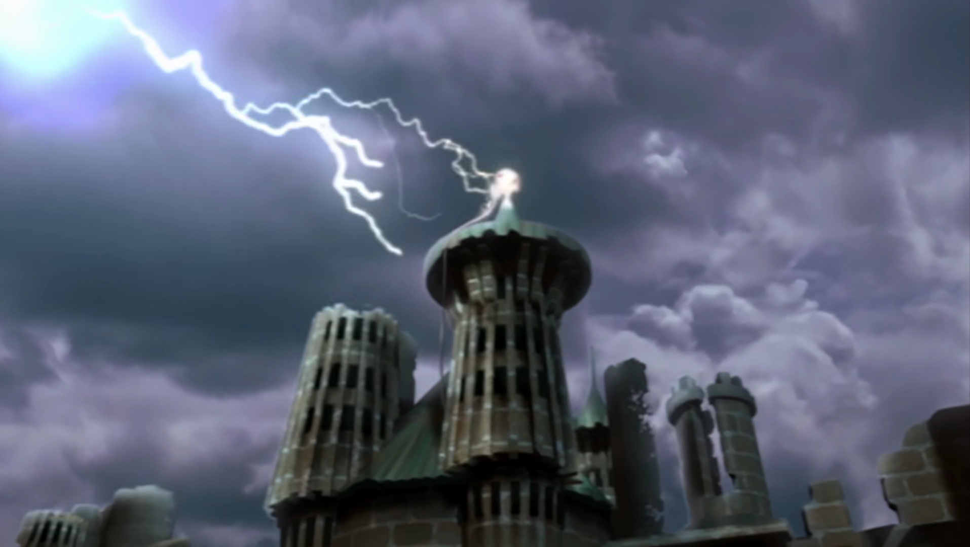 Lightning striking a tower outside the castle on Heliopolis.