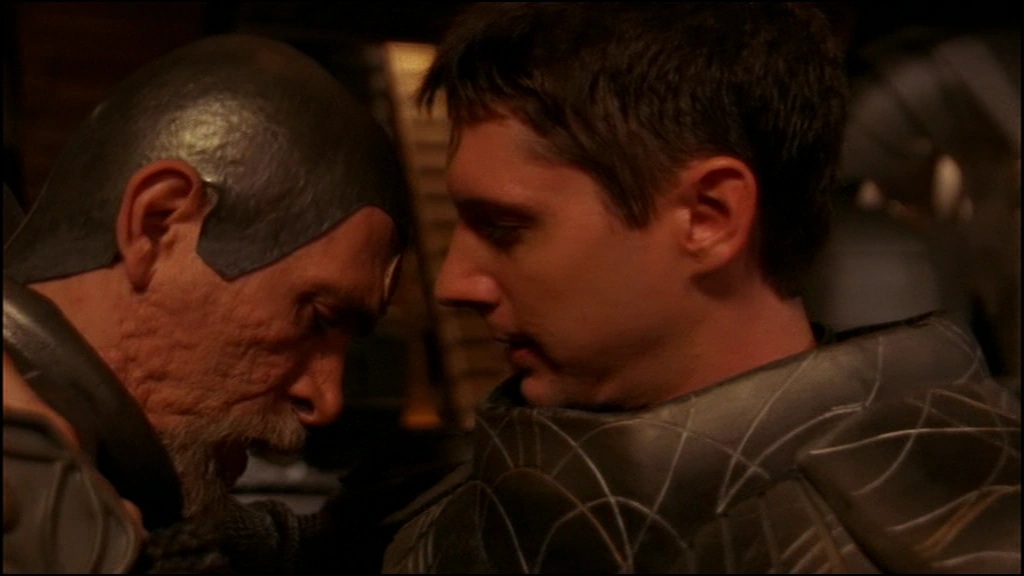 Meanwhile, on Chulak, night has fallen. Teal'c and Bra'tac sit in a large tent gently illuminated by candlelight as various Jaffa are called in one at a time. As the next Jaffa approaches the tent, the several Jaffa guarding the entrance allow him to enter. He approaches Teal'c and Bra'tac and introduces himself as Ronan, whose father is known to Bra'tac, and states that it is an honor to meet them in person. He reveals that he has a Tel'tak at his disposal but warns them that, no matter how brave they are, he has seen the extent of Anubis' fleet. He contends that one Tel'tak is no match for such a formidable force. Bra'tac however, tells him that they only intend to use the ship to find something far more powerful that has the potential to defeat Anubis once and for all. Upon hearing this, Ronan agrees to offer his ship on the condition that he join them in their mission. Teal'c and Bra'tac accept his offer, noting Ronan to be a fine pilot.