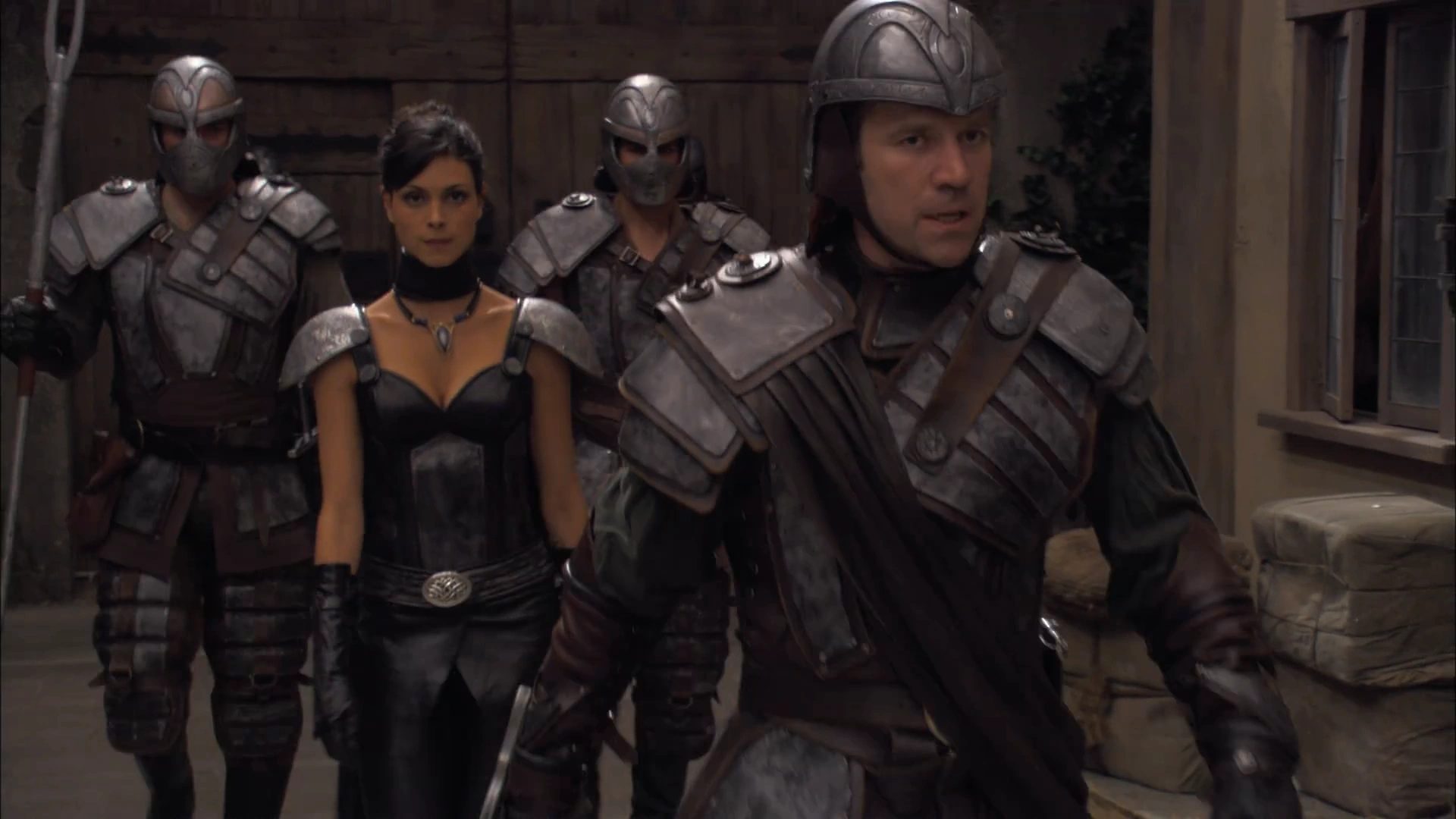 The ensemble was plated across the chest, as well as layered over with a diagonal segment that was connected to their left shoulder guard. Their right shoulder was also covered, and Commanders could also be seen wearing sashes from them. The armor set also included pants. Some warriors also wore neck guards. (SG1: "The Quest, Part 1", "The Quest, Part 2", "Line in the Sand")