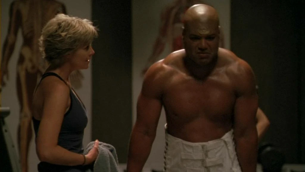 Jackson and Major Samantha Carter then work out in the gym, where she discusses a movie she recently saw when Aliens invade Earth, but they had a weakness of water. They are then overlooking Teal'c's physical therapy session, where the therapist tells him that he has passed his session for the day. However, Teal'c does not listen, and continues anyway, even ignoring Carter and Jackson, who says that overdoing his recovery could make his recovery last longer. After Teal'c tells them to leave him alone, Jackson hears the same voices again, thinking they were left over memories during his ascension. (He has recovered almost all of his memories from before he died, but is frustrated because he cannot remember anything from the time when he was ascended, not even whether he chose to return to physical form or was forced to. He also wonders whether he would have done more good if he had stayed ascended.)