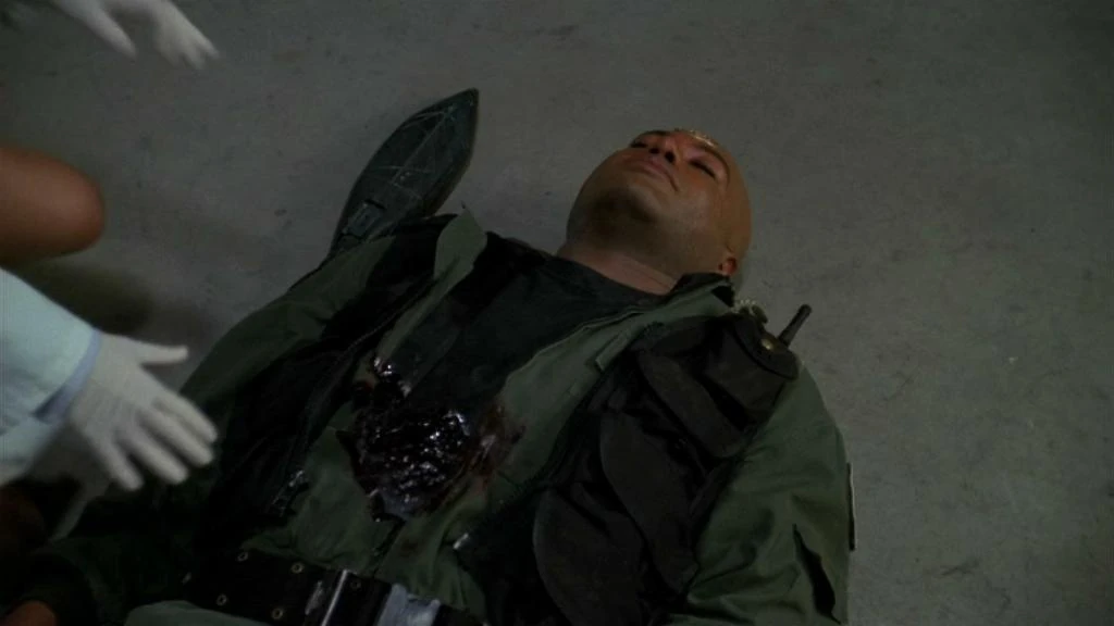 Some time later, Teal'c awakens while Dr. Janet Fraiser injects him with Tretonin. Fraiser tells Teal'c he's lucky, since he was wounded in the symbiote pouch, and if he still had his symbiote, he'd be dead (which was likely the intended result of the Jaffa soldier aiming there); however, he is still on a long road to recovery. In the Briefing Room, SG-1 briefs Hammond and tells him that they managed to escape by creating a diversion with a radio, then killed the Jaffa guarding the Gate. They identify that the majority of the Jaffa carried the symbol of Ba'al, whose empire is growing faster than anyone had anticipated, most likely to even the odds against Anubis.