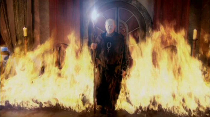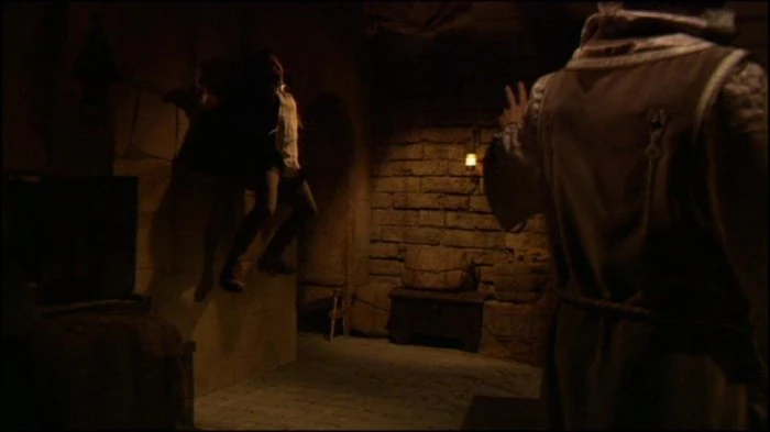 A Prior using his telekinesis to slam Daniel Jackson into the wall and holding him there.