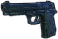 The 9mm was one of the weapons Major Julia Reaves of SGR-2 used on Leonops against the System Lords Third Battle Group when the two forces were trapped in Mahes' Court of Judgement.[1] (Stargate Resistance)