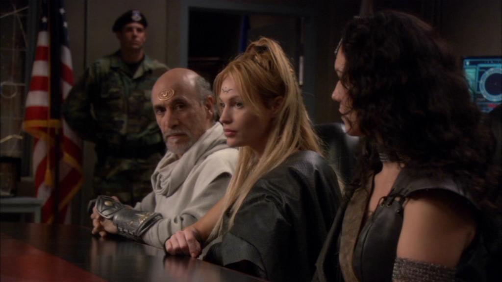 Teal'c believes Ishta has been avoiding him, but she says that he must have no respect for her because Rya'c is marrying a warrior that is not worthy of his father's respect. Teal'c makes it clear that he simply believes he has too much life ahead to make such a rash decision so early, but Ishta argues that as Teal'c had no choice but to break away from his family to serve, Rya'c should have the authority to do the same. Their opinions also differ on how to proceed in the war against the Goa'uld.