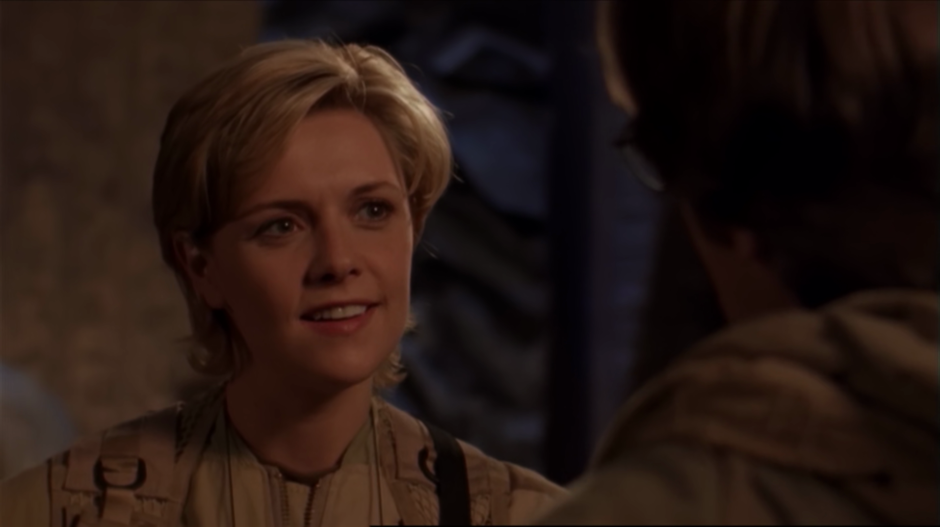 When Teal'c was left trapped in the Stargate, Sam worked to save in spite of a timeline of 48 hours. She also met and developed a strong grudge against her fellow scientific rival, Dr. Rodney McKay, who started out certain that Teal'c was already dead and referred to her as a 'dumb blonde' even after he was proven wrong and Teal'c was rescued. (SG1: "48 Hours")