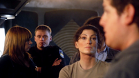 She and roughly 80 people were forced to evacuate Icarus Base during an attack against the base by three Lucian Alliance Ha'tak vessels. She ended up on the Destiny, an Ancient spaceship located several billion light years from Earth. (SGU: "Air, Part 1")