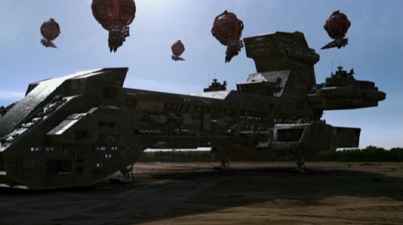 Once the Prometheus landed on the planet, it was met with several of the Tagrean Armoured balloons as well as troops and tanks on the ground. SG-1 were chosen as the liaisons to the planet, and so went to meet with the armed battalion of soldiers. As they neared the troops, they were met by Commander Kalfas of the Tagrean Security Force, who was wary of these people to the point of xenophobia, and demanded that they disarm themselves or they and their ship would be fired upon. Taking him at his word, SG-1 dropped their weapons and were escorted into the capital city to meet with the leader of the Tagrean people.