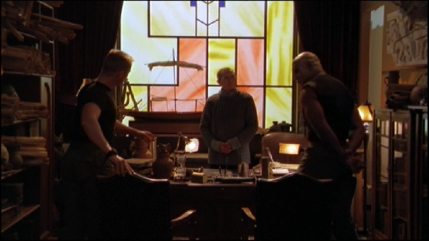 While the others interacted with the Tagreans, Teal'c and Jonas were given access to the Tagrean library where they looked for more information while being monitored both by Tagrean guards and a scholar in the library. After the two cornered this scholar, he informed them that he may be able to help them find the Ring of the Gods. Taking them into his office, Tarek Solamon revealed that he was a follower of Horus, but was quickly informed by Teal'c that Horus was a false god. After this, he revealed artifacts which he had managed to collect over the years along with a parchment which spoke of the Chappa'ai. Teal'c and Jonas soon translated the parchment and, with the help of Terek, determined that the Stargate was located north of the city, in the Wastelands of Anhur.