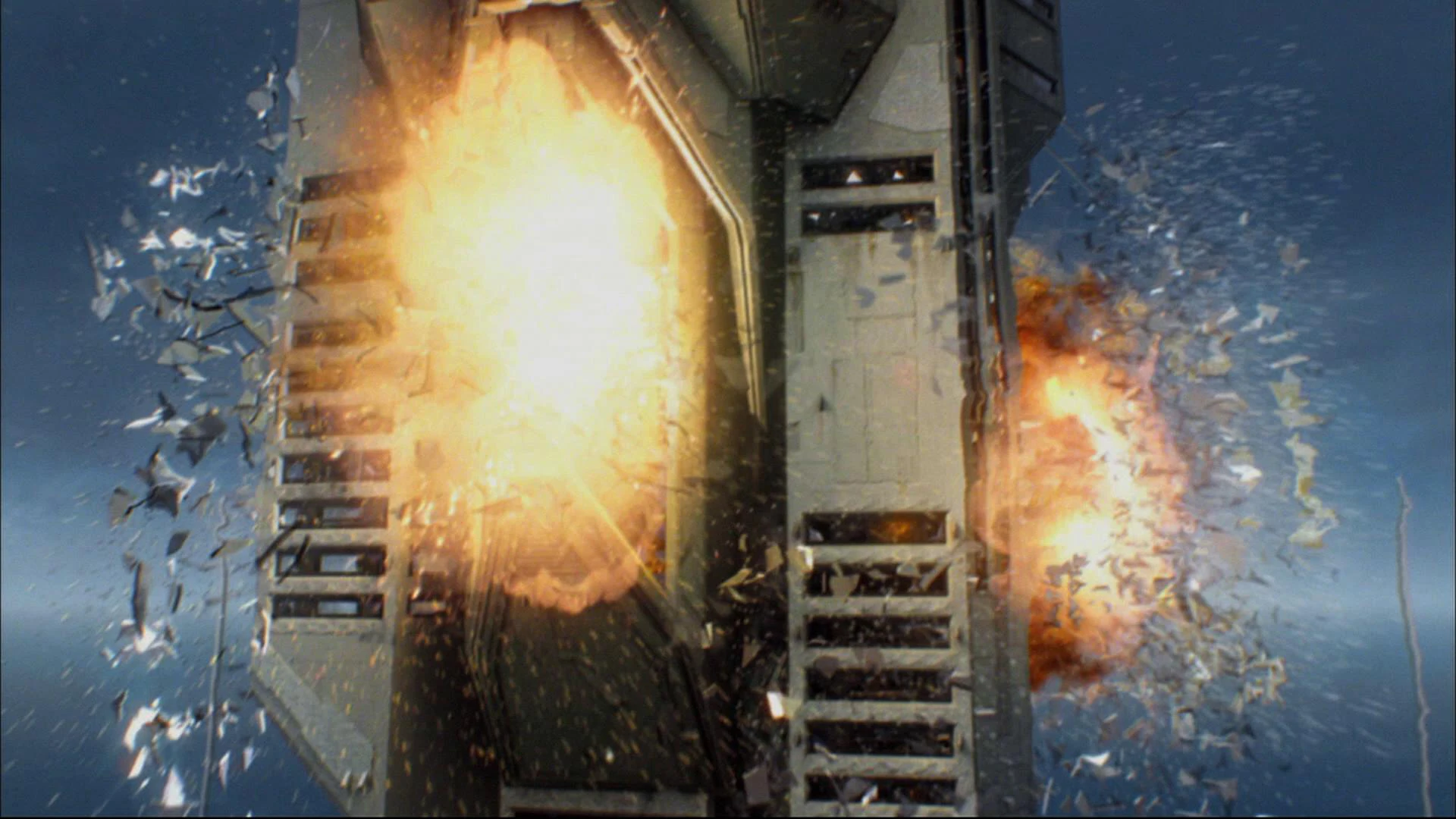 An explosion rocks the central tower.