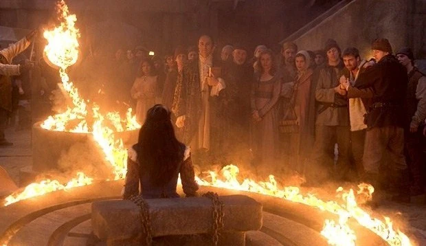 There they learn about an oppressive religion called Origin. They discover that Harrid and Sallis were part of the anti-Ori underground and meet Fannis, one of their friends who was also part of this organization, and he tells them they have a communicator device identical to the one they used in the Milky Way, which Harrid and Sallis had connected to. Not long after, they are revealed as impostors. Vala (in Sallis' body) is killed by The Administrator, and then is brought back to life by a Prior. Daniel and Vala are then both taken to the Ori City of Celestis. Daniel is taken to see the Doci, but he and Vala still reject what the followers of Origin are telling them, and are both sentenced to death by fire. Since Daniel and Vala's actual bodies in the Milky Way are responding to what is happening to Harrid and Sallis in the Ori galaxy, Stargate Command becomes quite concerned. At the last instant before Daniel and Vala would have been killed, Teal'c and Mitchell take the communication device and throw it into the unstable vortex of an activating Stargate, annihilating it and bringing Daniel and Vala's consciousnesses back to their own bodies just before Harrid and Sallis are burned to death. (SG1: "Avalon, Part 1", "Avalon, Part 2", "Origin")