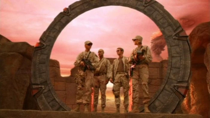 - After the Stargate is automatically dialed at the beginning of the episode and the vortex fades, the event horizon is not visible. Though this could be because it is linked to 14 different Stargates at the same time, so an entrance might not be able to be established.